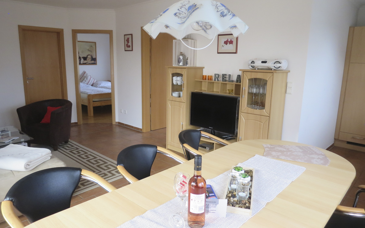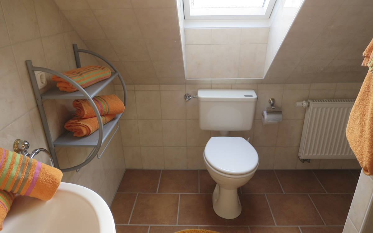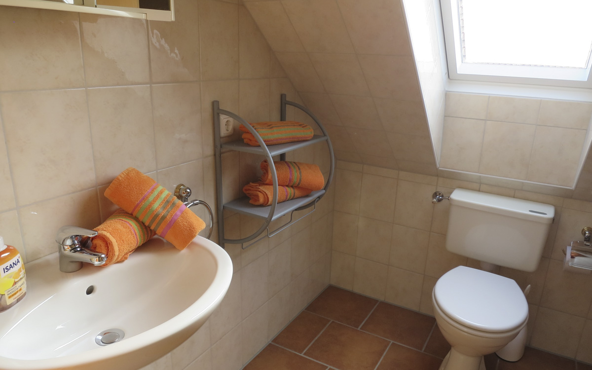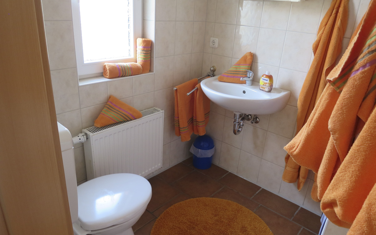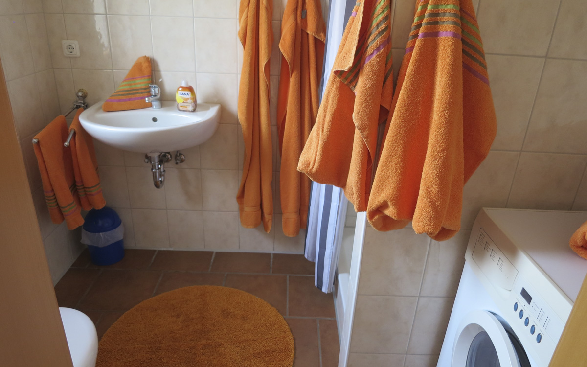 Das Ferienhaus erstreckt sich über zwei Wohnebenen mit einem großen Wohnbereich im Erdgeschoß. Hier befindet sich eine gemütliche Sitzecke, ein Essbereich und die offene Küche mit Geschirrspülmaschine. Der Wohnbereich ist mit einem LCD TV ausgestattet. Vom Wohnbereich gelangt man auf die große Terrasse mit Gartenmöbeln, Grill und Sonnenschirm. Zwei Schlafzimmer für jeweils zwei Personen befinden sich ebenfalls im Erdgeschoß. Auch das Duschbad mit Waschmaschine ist im Erdgeschoß. Im Flur, über eine Holztreppe, betritt man den oberen Wohnbereich mit ebenfalls zwei Schlafzimmern für jeweils zwei Personen und ein weiteres Duschbad. An der Terrasse befindet sich noch ein zusätzlicher Hauswirtschaftsraum. Hier können auch Fahrräder oder Kinderwagen eingestellt werden.