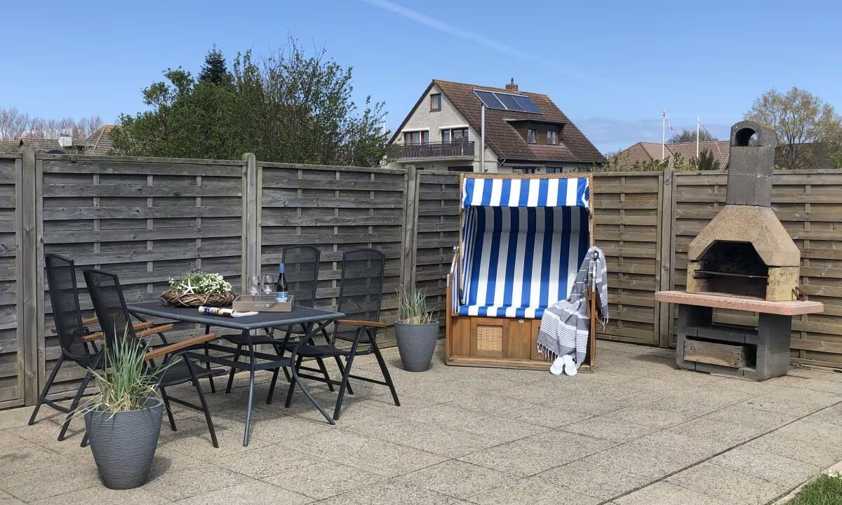 Im liebevoll gestalteten Garten stehen Ihnen Gartenmöbel sowie Strandkörbe zur Verfügung, die zum Verweilen im Freien einladen.