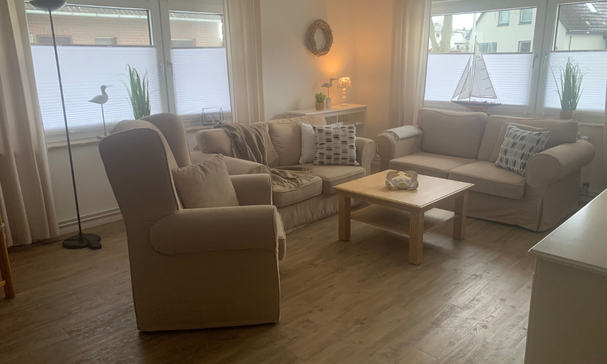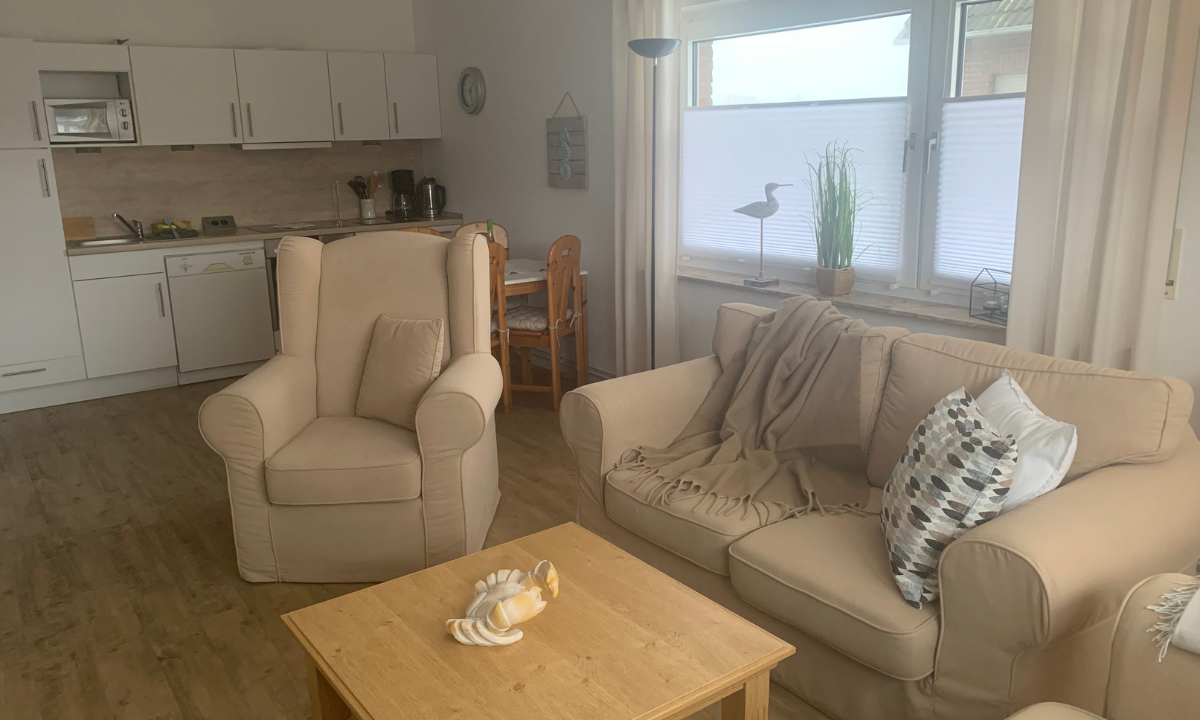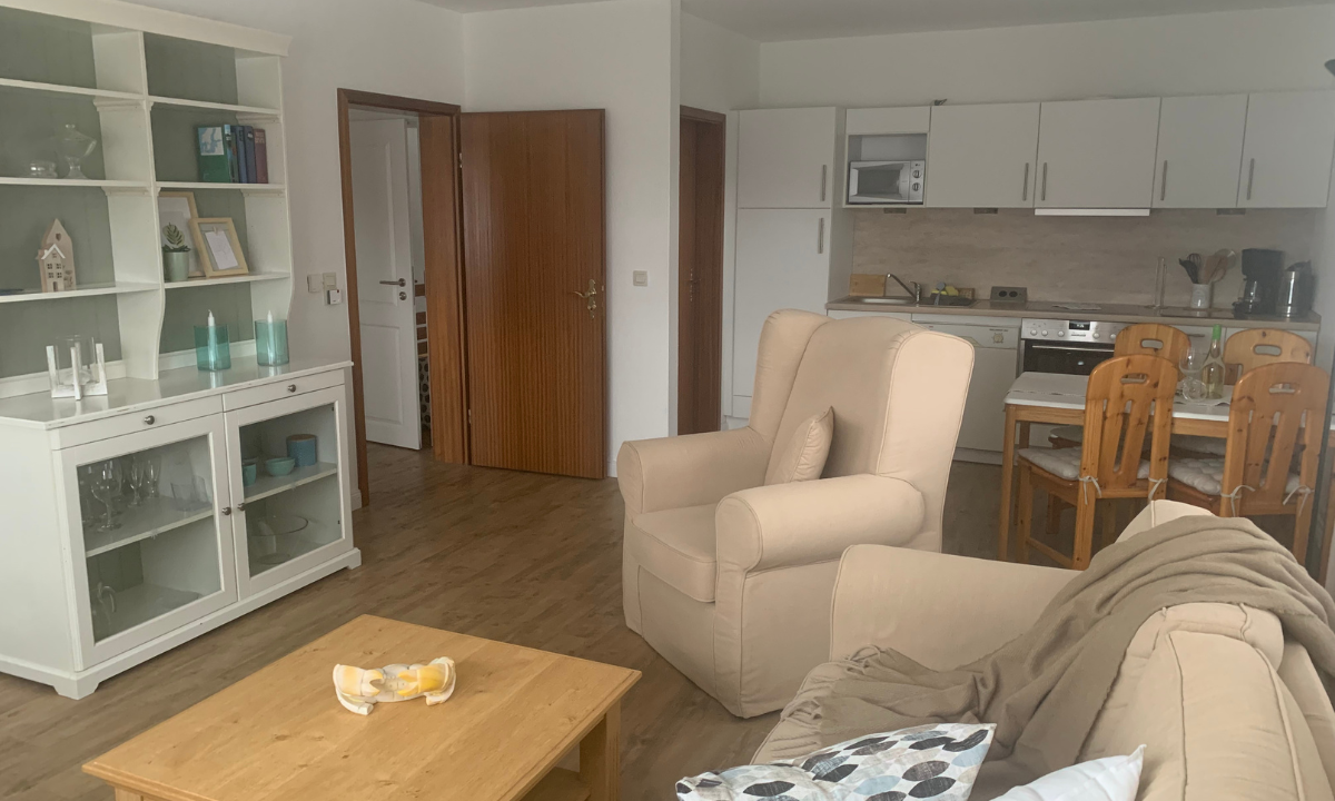 Die Ferienwohnung Dorsch in Maasholm ist rund 56 Quadratmeter groß und ideal für bis zu zwei Personen geeignet. Sie erwartet ein behagliches und gepflegtes Wohnambiente mit bequemen Polstermöbeln, das zum Entspannen und Wohlfühlen einlädt.
